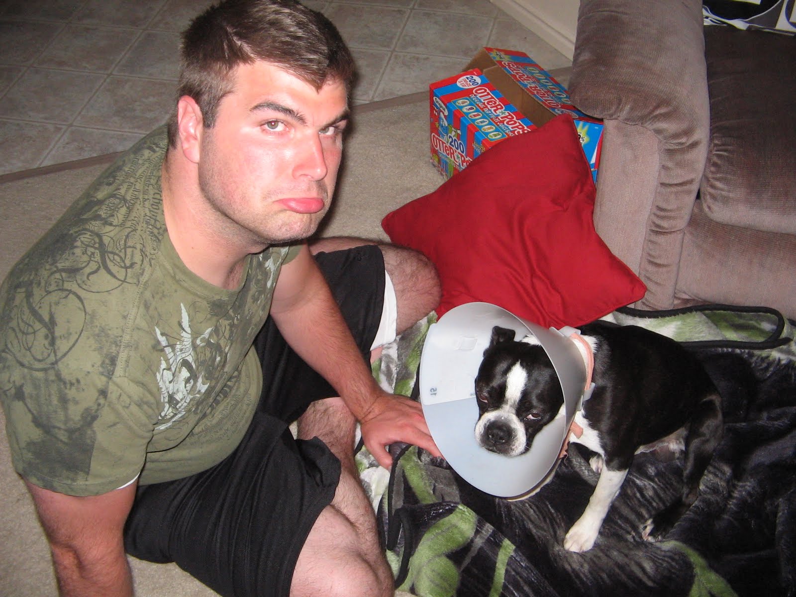 My little doggy got operated on this last thursday.. he is SO sad and I want to make things better for him. But oh boy is he spoiled.. he gets a special bacon treat about every 30 minutes just so he will know that I still love him and that hes not being punished.. haha. He has to wear this very stylish cone around his neck for 2 weeks but then he will be as good as new.. and no more trying to get some action from every dog he meets.. even males.